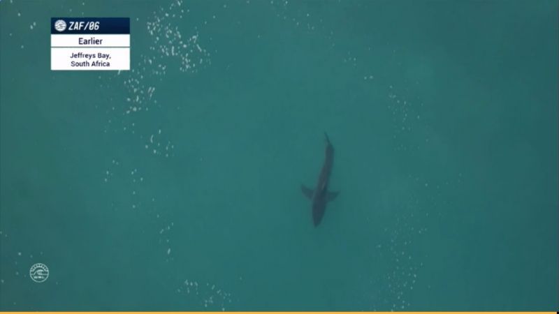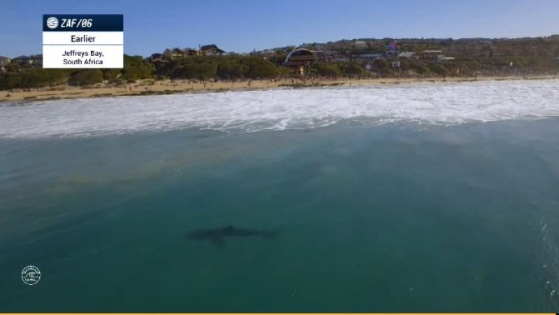 Mais um tubarão acabar de aparecer no lineup de Jbay. Dessa vez, nas quartas e com Medina e Mick na disputa.