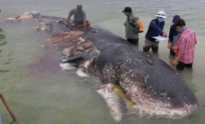 Segundo a World Wide Fund for Nature - Indonésia (WWF, "Fundo Mundial para a Natureza") foram indentificados diversos objetos plásticos no organismo da baleia, tais quais: garrafas, sacos, chinelos, copos, entre outros.