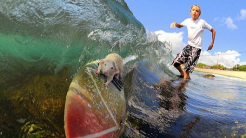 Quando você já tinha se acostumado com a história do Stuart Little, o rato que usava All Star e calça jeans, o ratinho Tofu prefere ficar sem roupa, pegar ondas de até 4 pés e curtir vários tubos com seu dono Boomer Hodel de 14 anos.